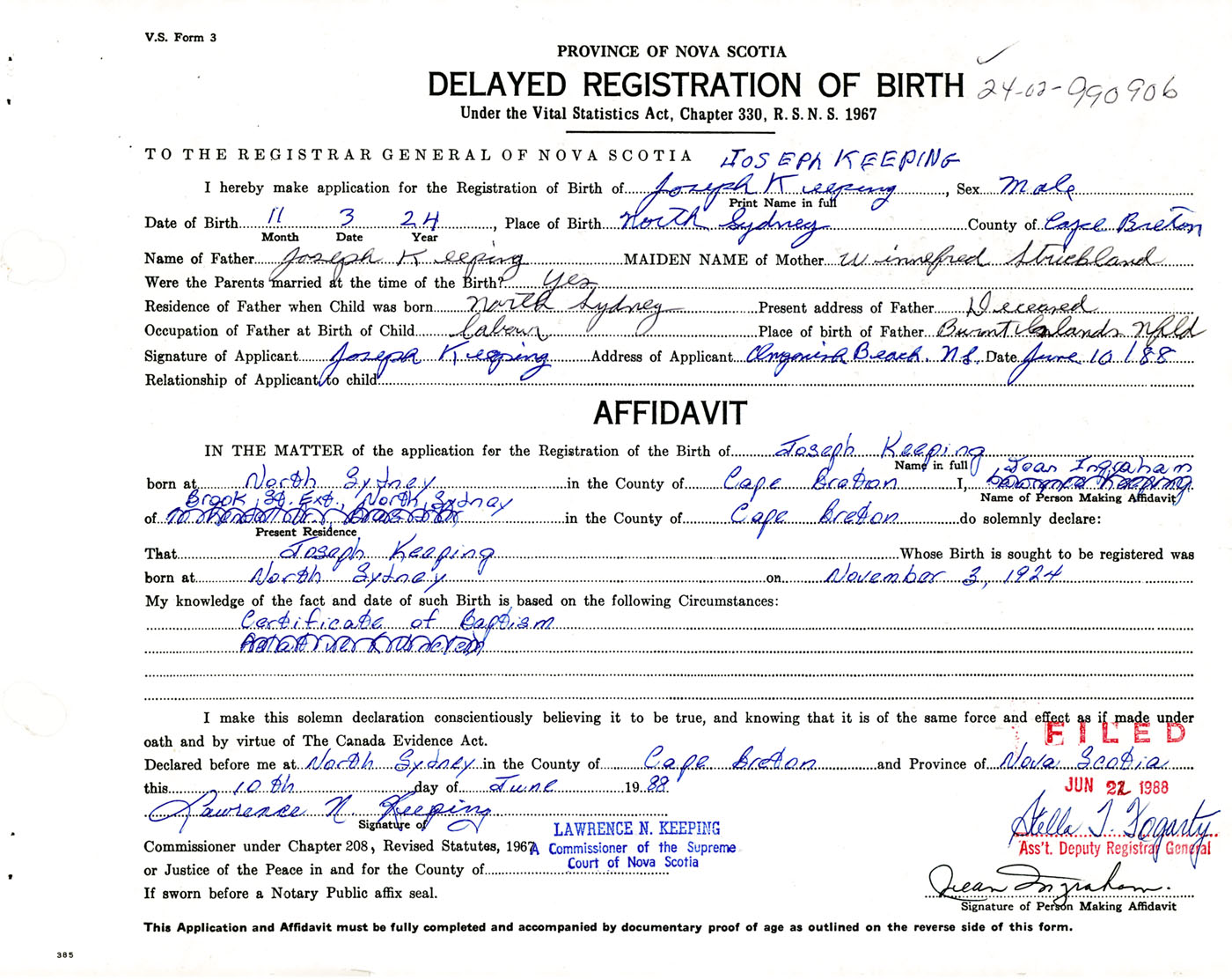 Male Birth Registration: Year: 1924 number: 99000906