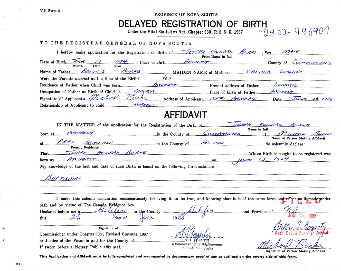 That Joseph EdwardBurke Whose Birth is sought to be registered was