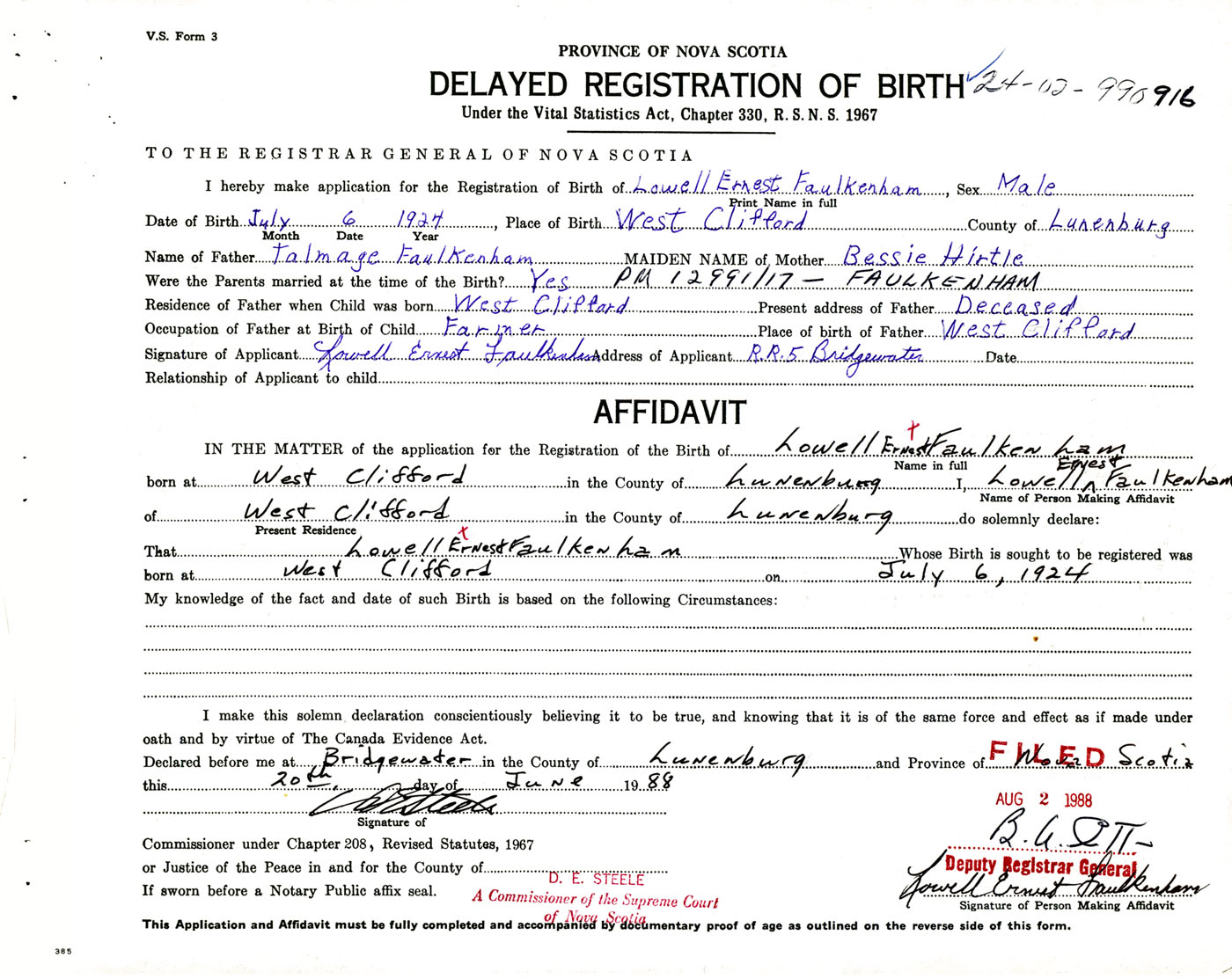 Male Birth Registration: Year: 1924 number: 99000916