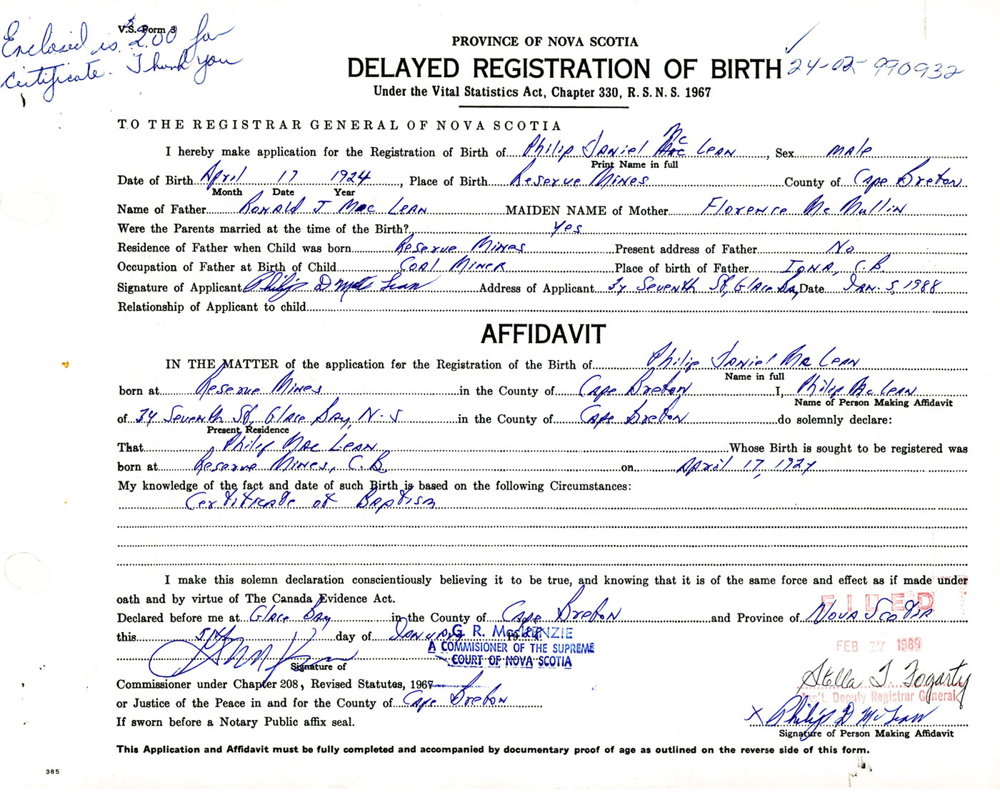 Male Birth Registration: Year: 1924 number: 99000932