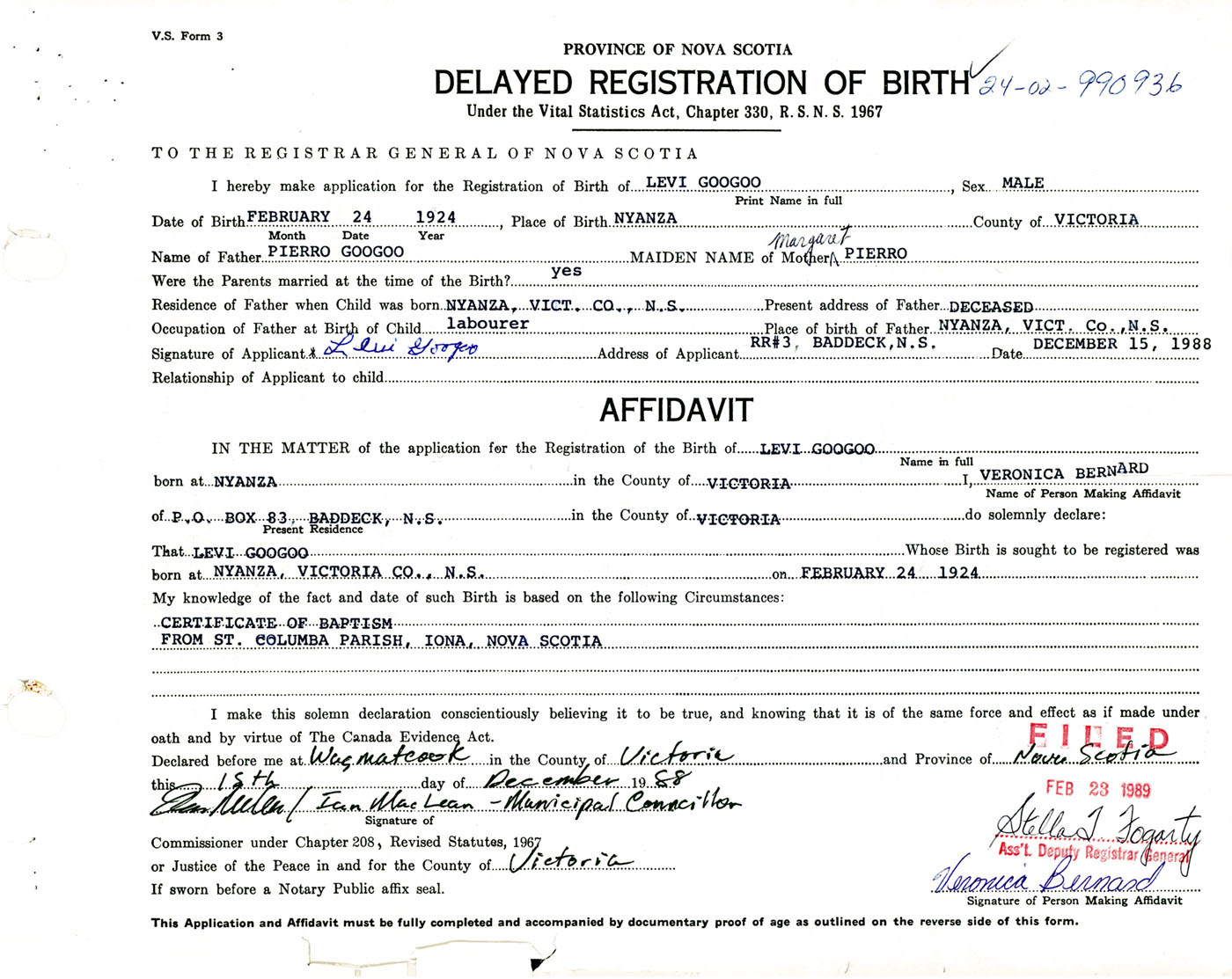 14. Certificate of Baptism from St. Columba Parish, Iona, Nova Scotia