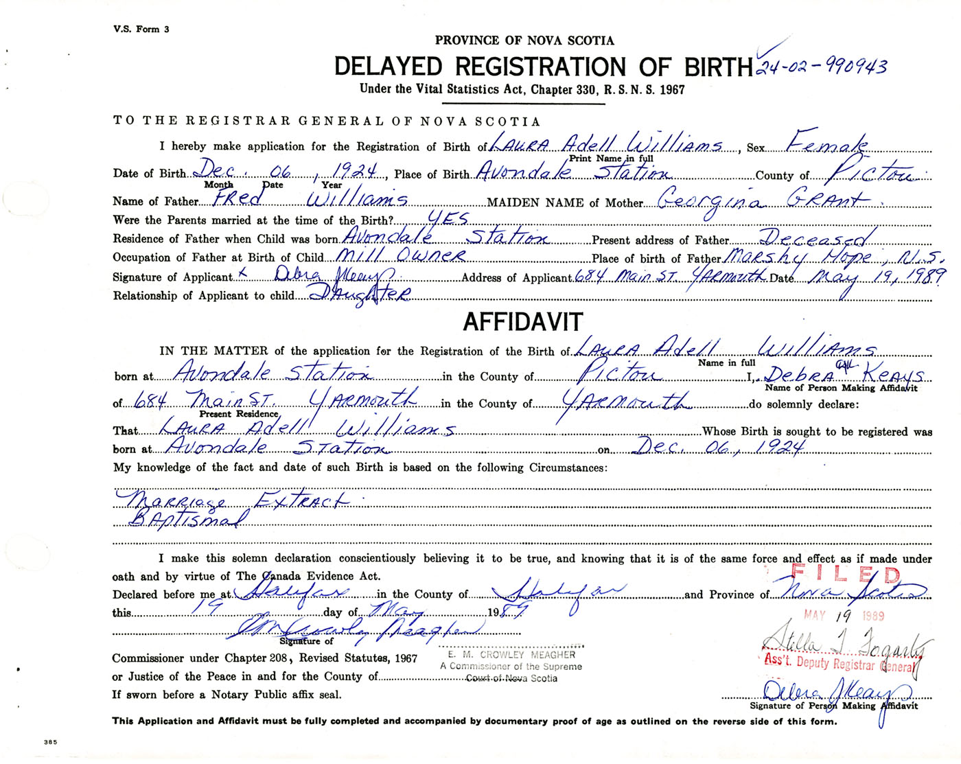 IN THE MATTER of the application for the Registration of the Birth of Laura AdellWilliams