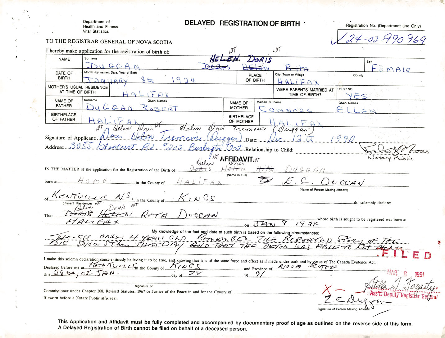 Female Birth Registration: Year: 1924 number: 99000969
