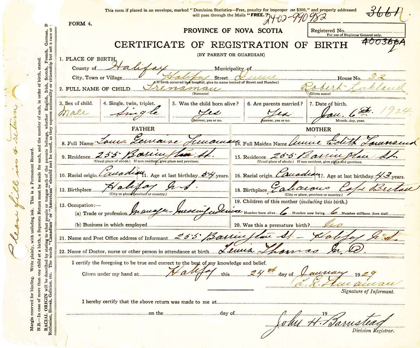 Male Birth Registration: Year: 1924 number: 99000982