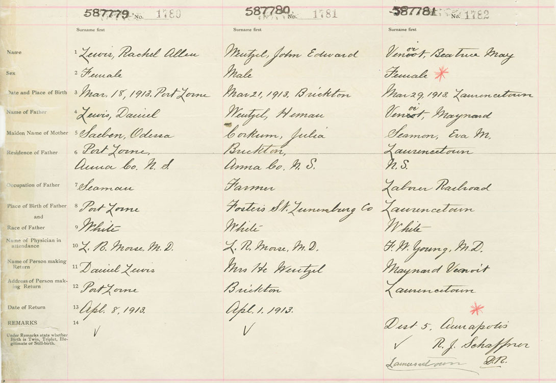 Female Birth Registration: Year: 1913 number: 58700779