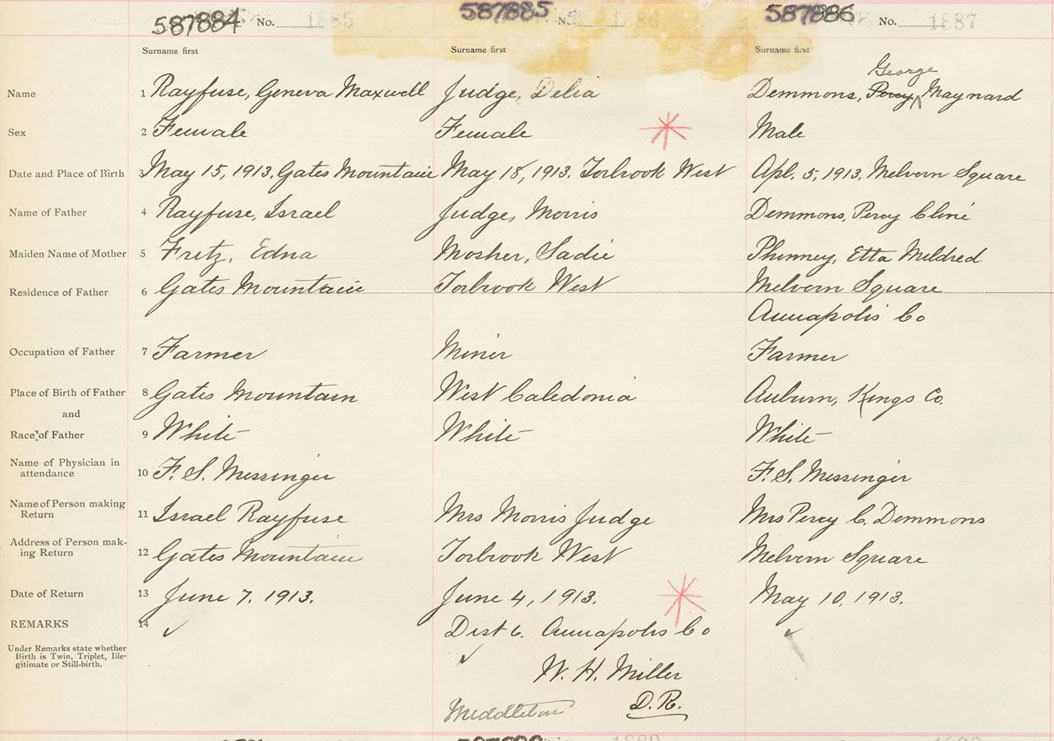 Male Birth Registration: Year: 1913 number: 58700886
