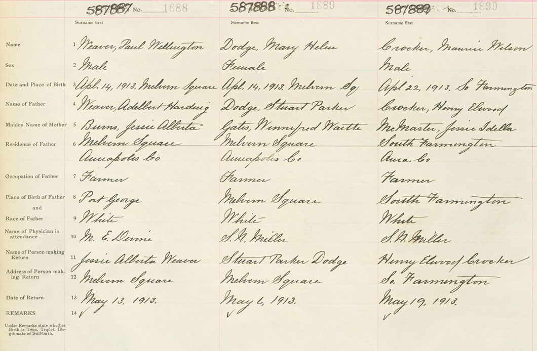 Male Birth Registration: Year: 1913 number: 58700889