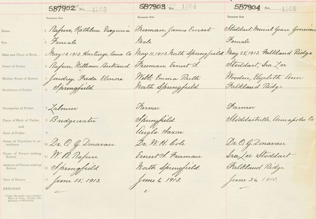 Female Birth Registration: Year: 1913 number: 58700904