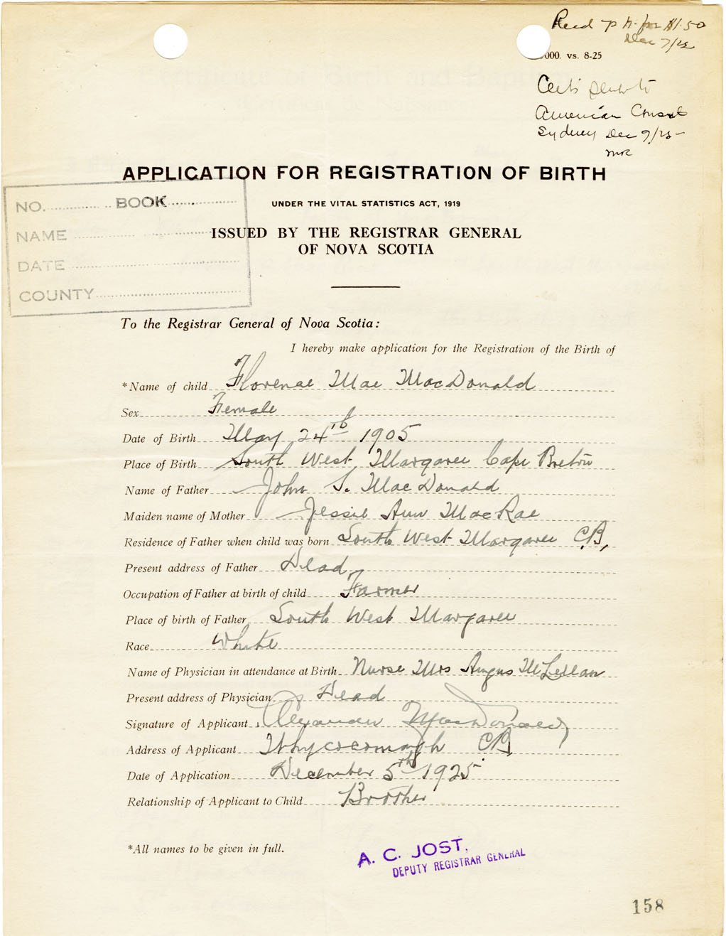 Nova Scotia Archives — https://archives.novascotia.ca/vital-statistics/birth/?ID=460806