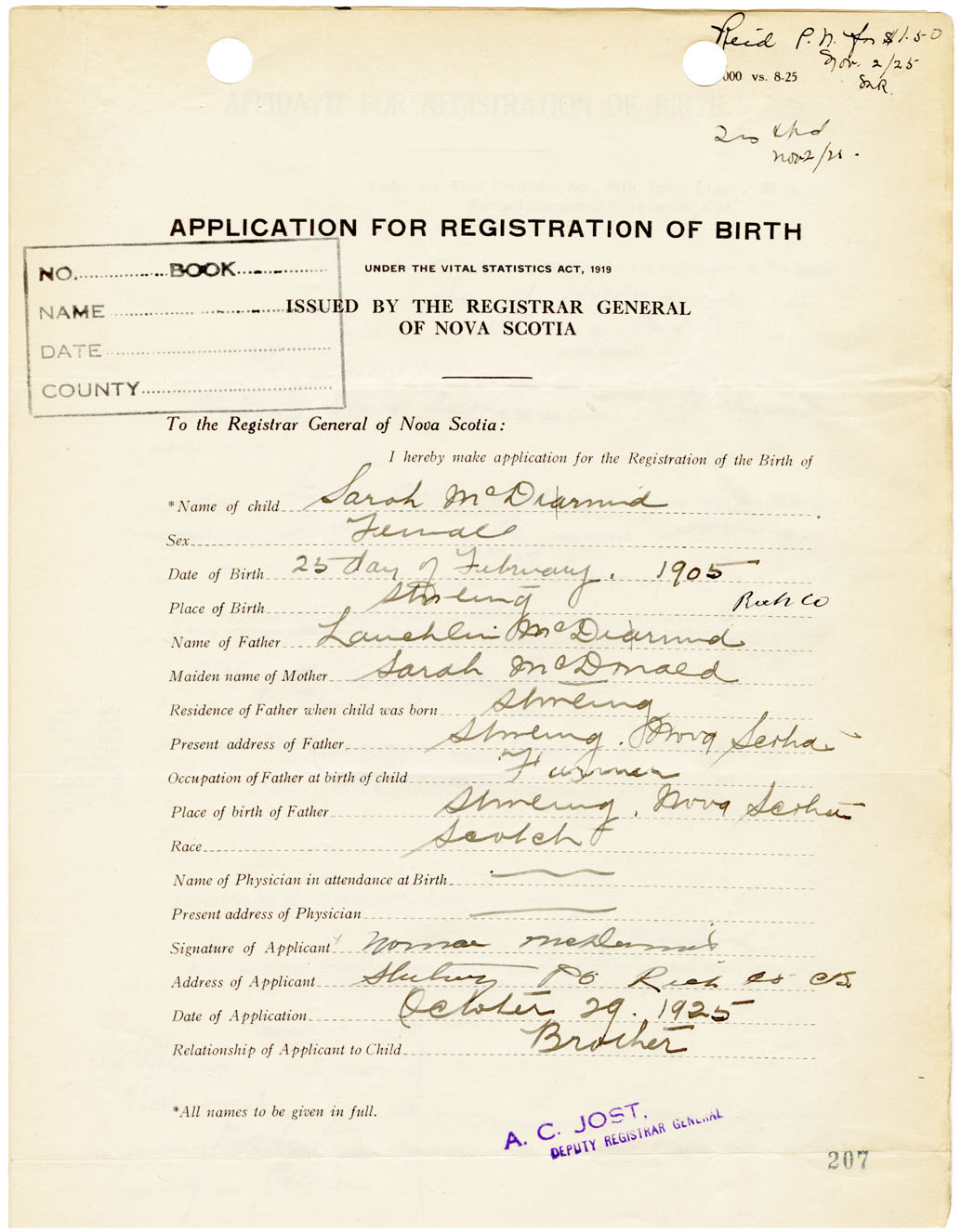 Nova Scotia Archives — https://archives.novascotia.ca/vital-statistics/birth/?ID=460808