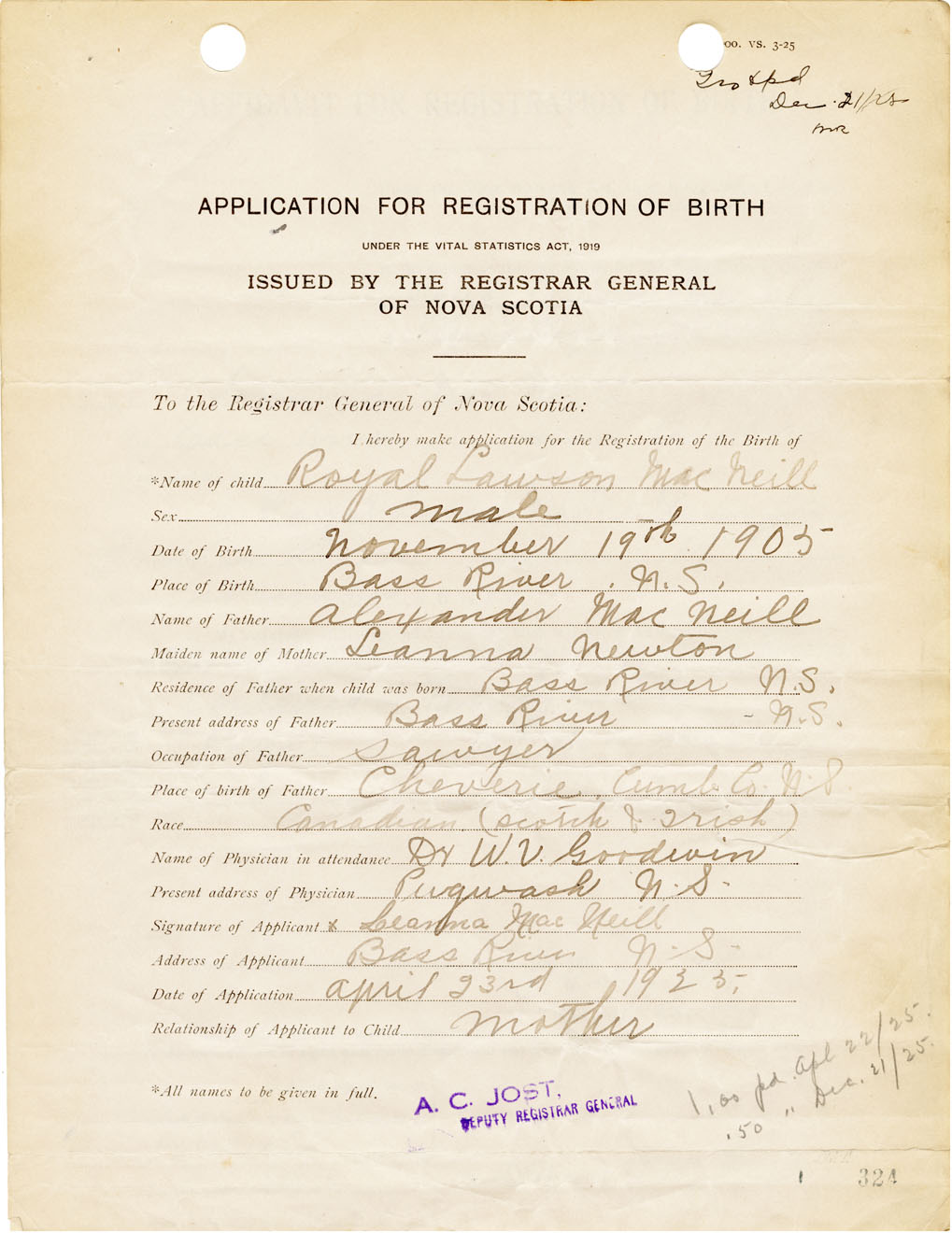 Nova Scotia Archives — https://archives.novascotia.ca/vital-statistics/birth/?ID=460815