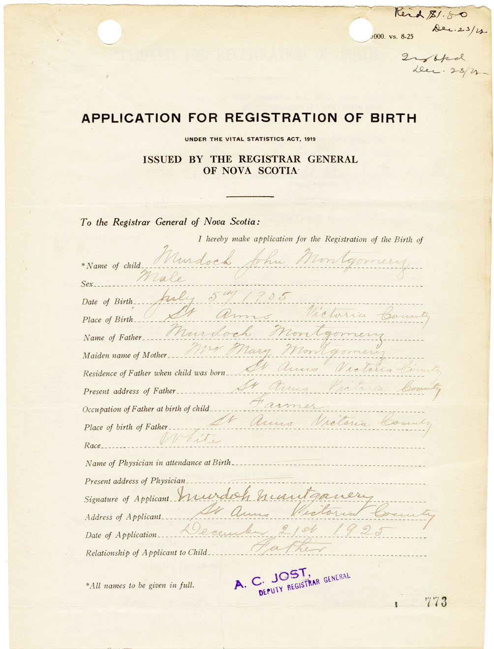 Nova Scotia Archives — https://archives.novascotia.ca/vital-statistics/birth/?ID=460840