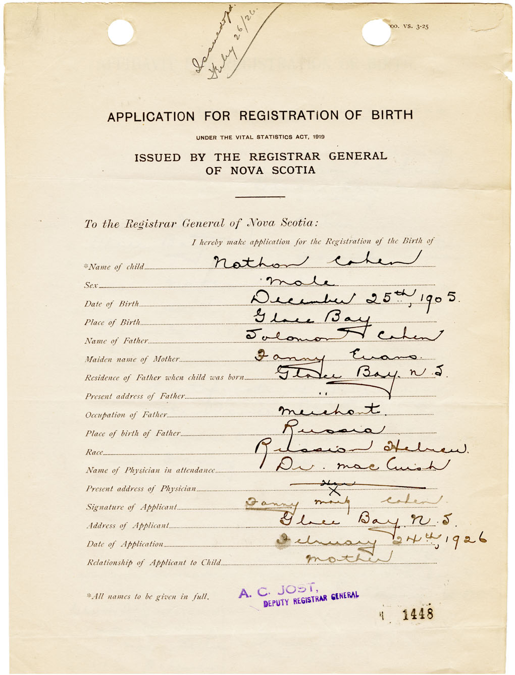 Nova Scotia Archives — https://archives.novascotia.ca/vital-statistics/birth/?ID=460895