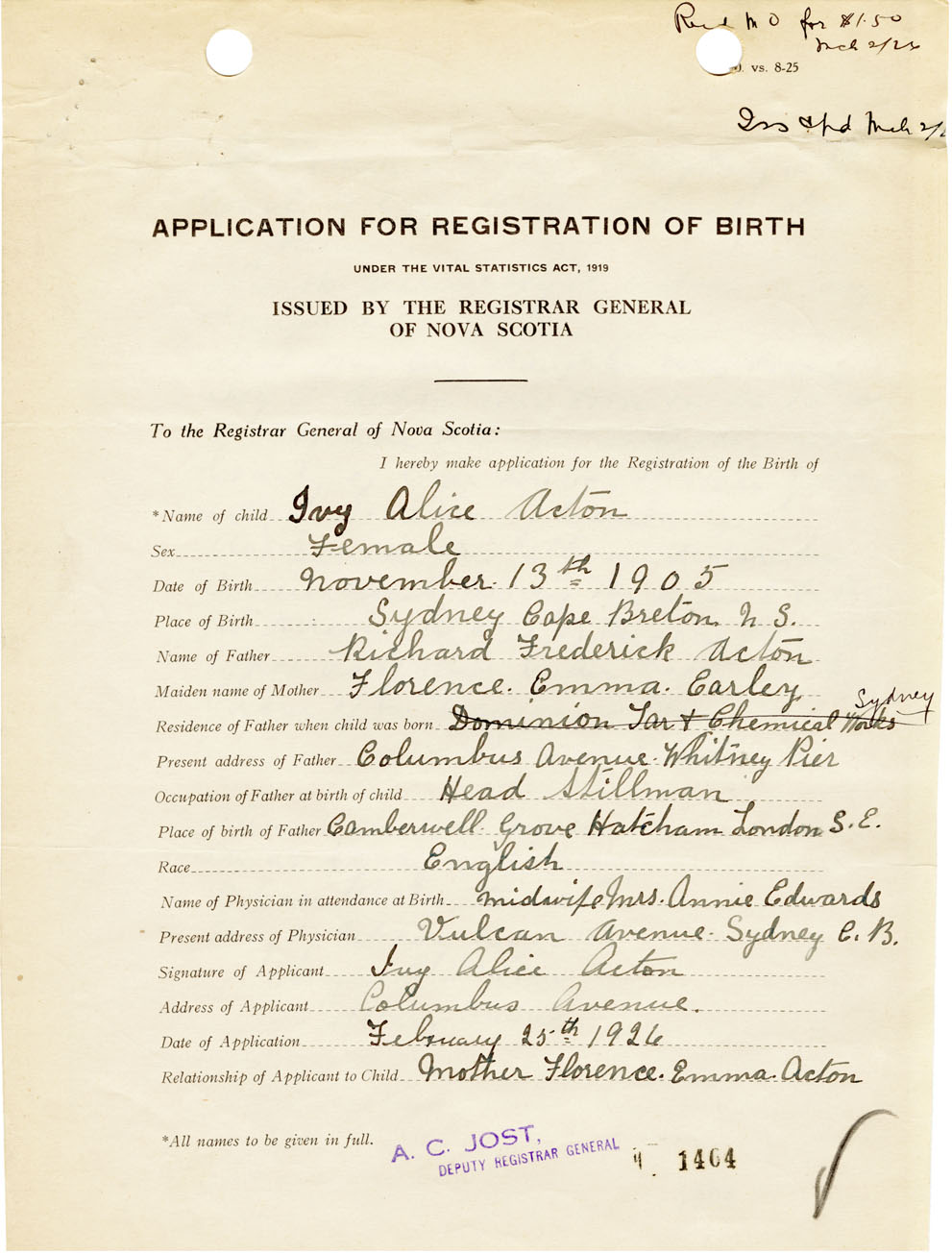 Nova Scotia Archives — https://archives.novascotia.ca/vital-statistics/birth/?ID=460899
