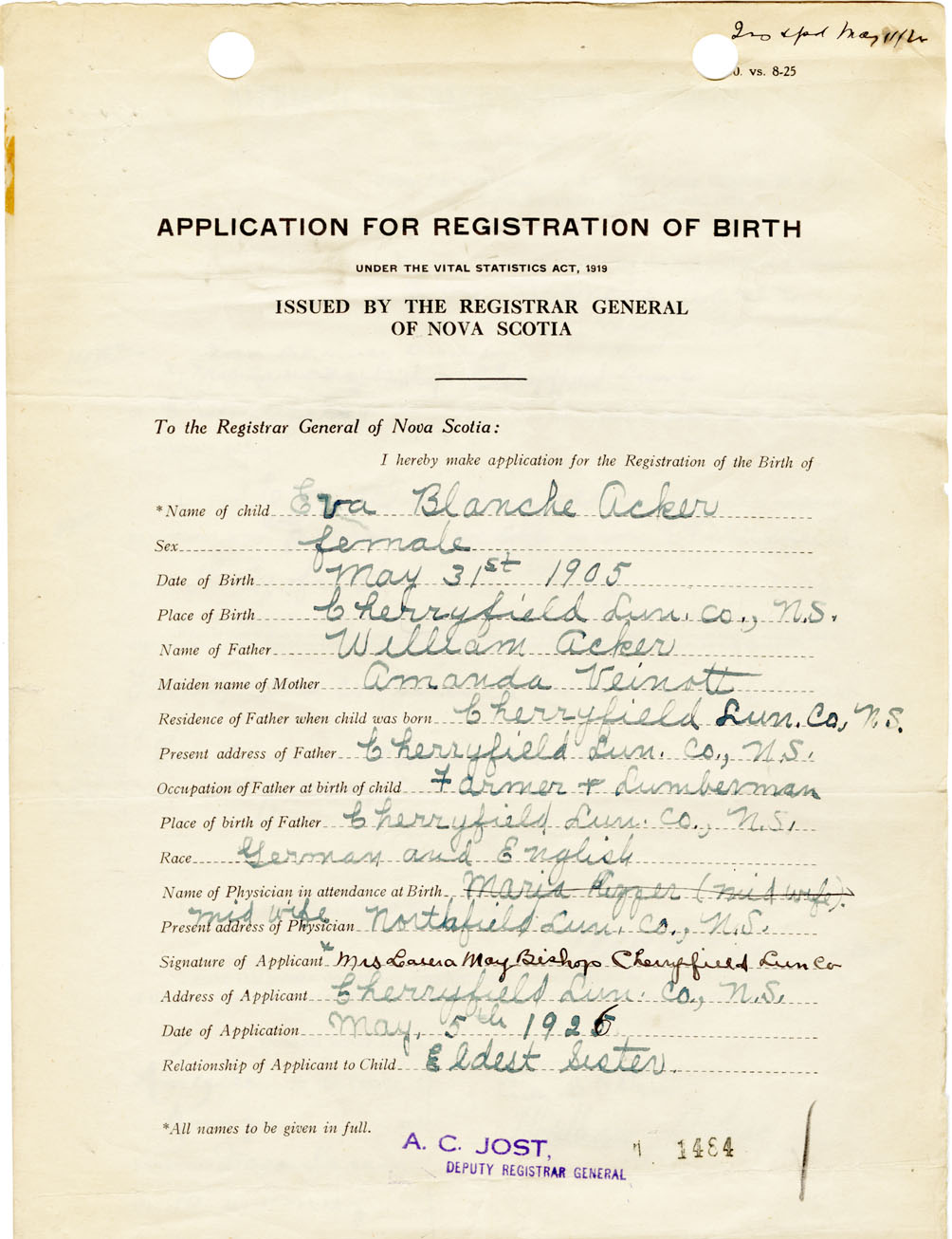 Nova Scotia Archives — https://archives.novascotia.ca/vital-statistics/birth/?ID=460901