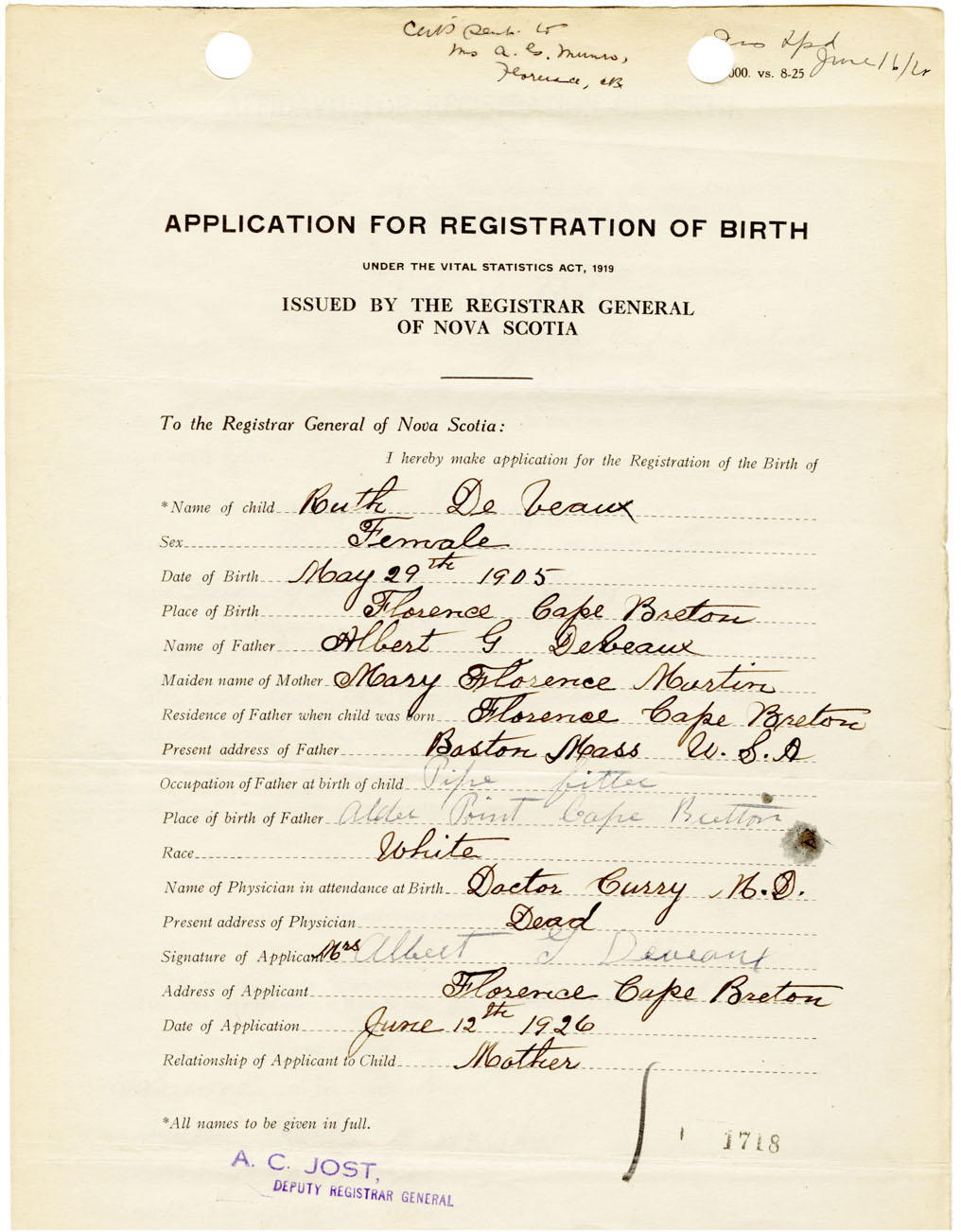 Nova Scotia Archives — https://archives.novascotia.ca/vital-statistics/birth/?ID=460922