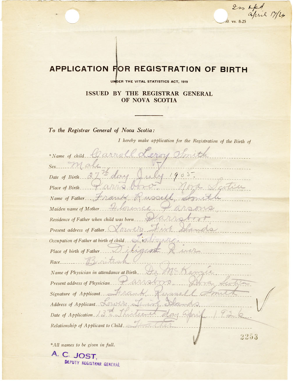 Nova Scotia Archives — https://archives.novascotia.ca/vital-statistics/birth/?ID=460955