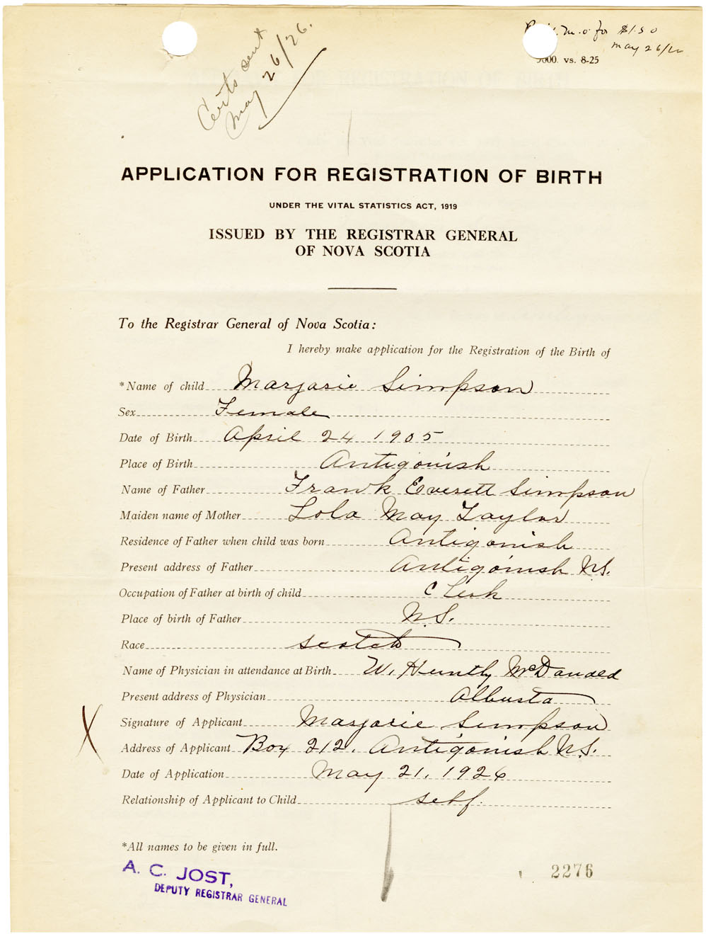 Nova Scotia Archives — https://archives.novascotia.ca/vital-statistics/birth/?ID=460956