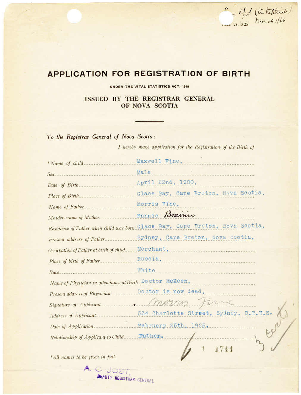 Nova Scotia Archives — https://archives.novascotia.ca/vital-statistics/birth/?ID=461009