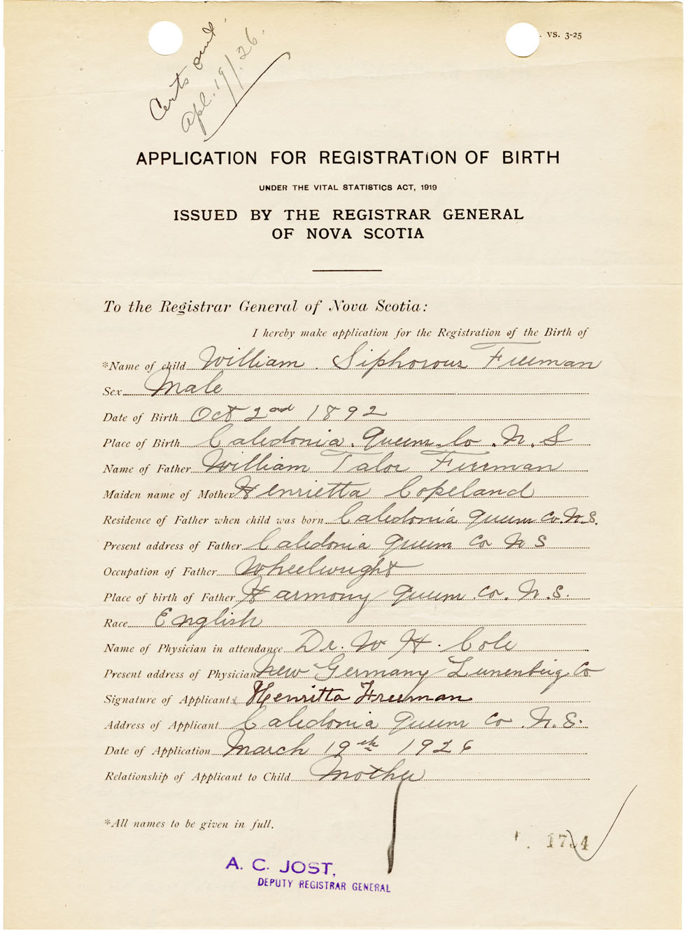 Nova Scotia Archives — https://archives.novascotia.ca/vital-statistics/birth/?ID=461015
