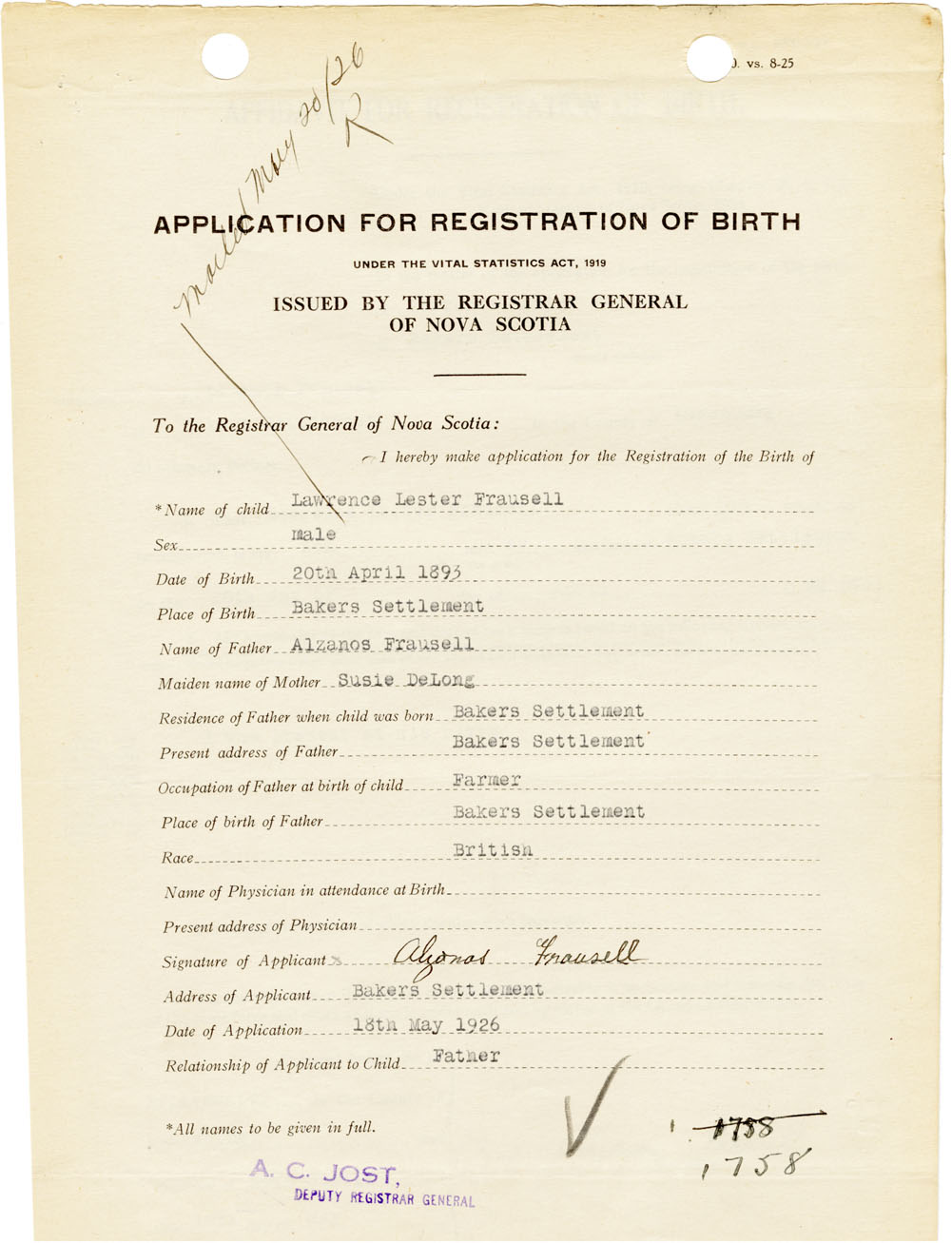 Nova Scotia Archives — https://archives.novascotia.ca/vital-statistics/birth/?ID=461016