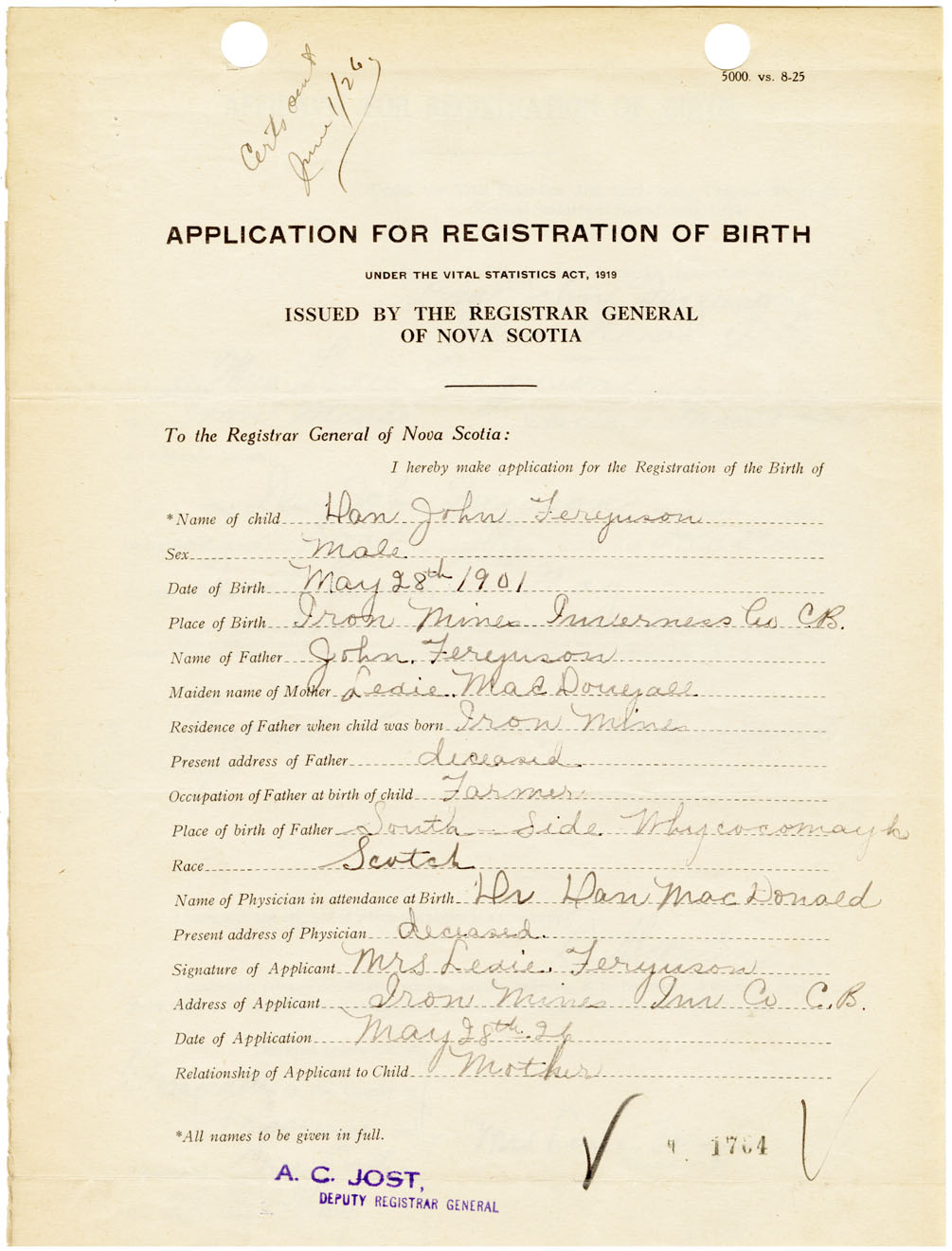 Nova Scotia Archives — https://archives.novascotia.ca/vital-statistics/birth/?ID=461020