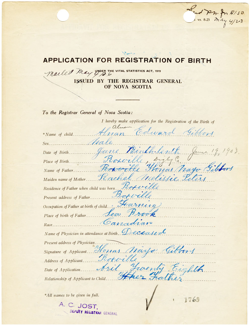 Nova Scotia Archives — https://archives.novascotia.ca/vital-statistics/birth/?ID=461023