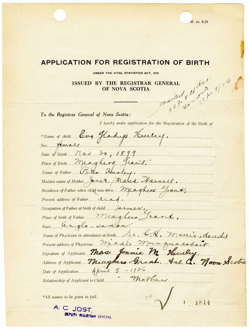Nova Scotia Archives — https://archives.novascotia.ca/vital-statistics/birth/?ID=461059