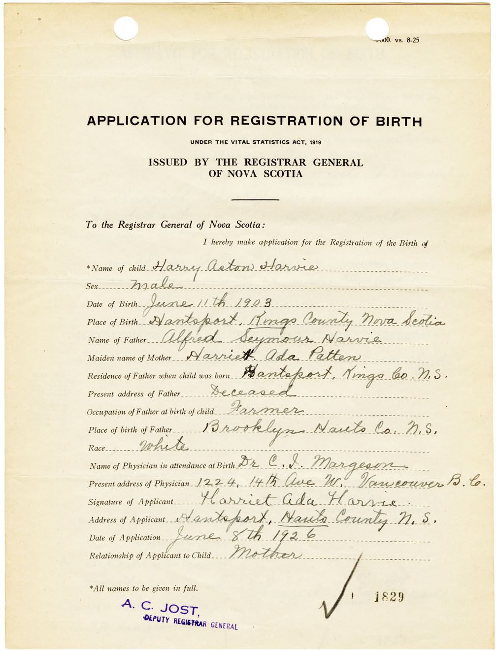 Nova Scotia Archives — https://archives.novascotia.ca/vital-statistics/birth/?ID=461066