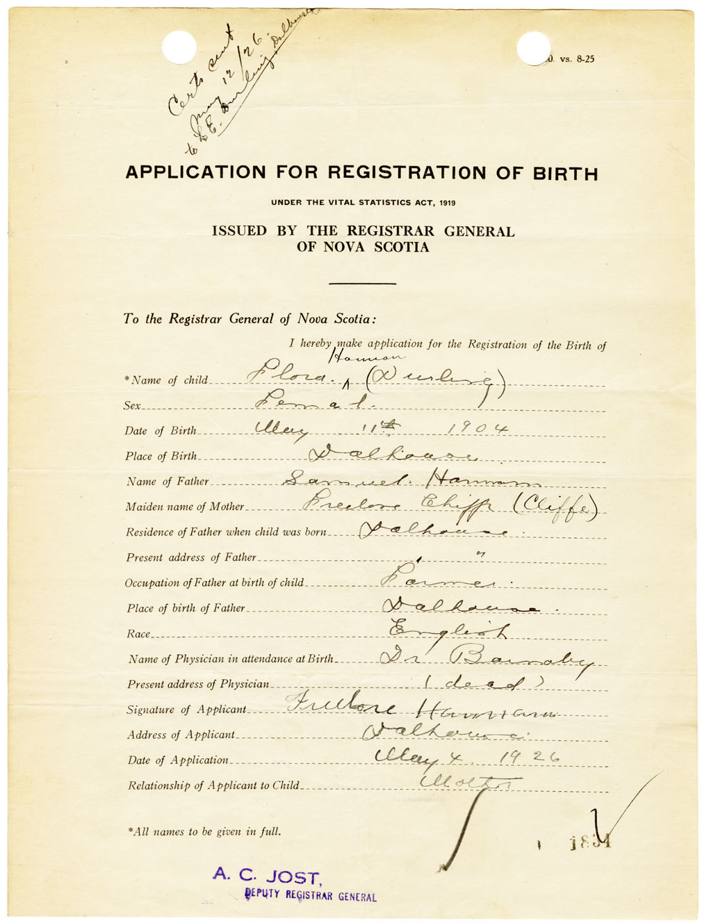 Nova Scotia Archives — https://archives.novascotia.ca/vital-statistics/birth/?ID=461071