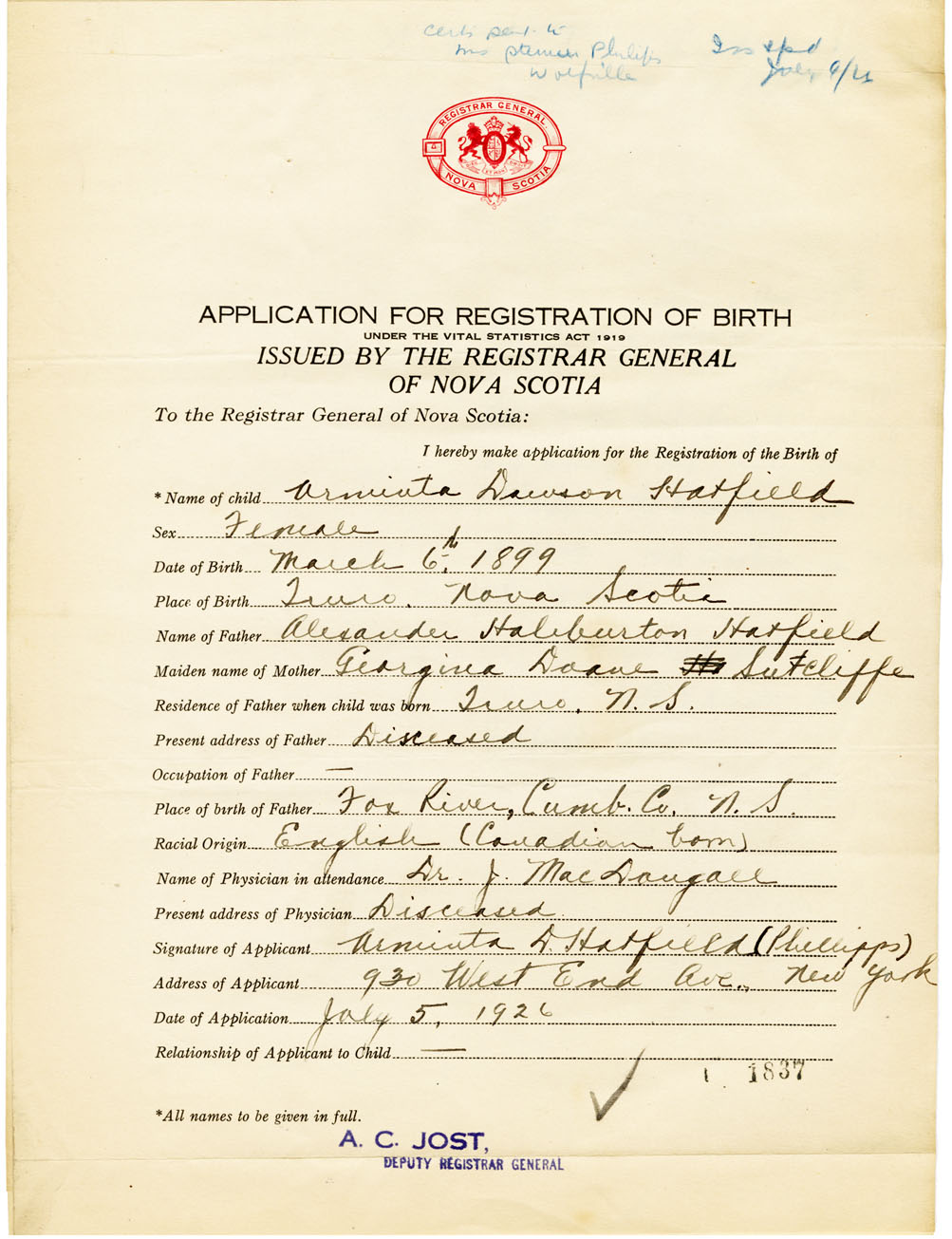 Nova Scotia Archives — https://archives.novascotia.ca/vital-statistics/birth/?ID=461074