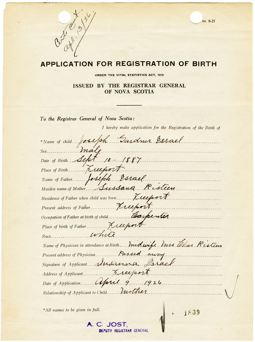 Nova Scotia Archives — https://archives.novascotia.ca/vital-statistics/birth/?ID=461076