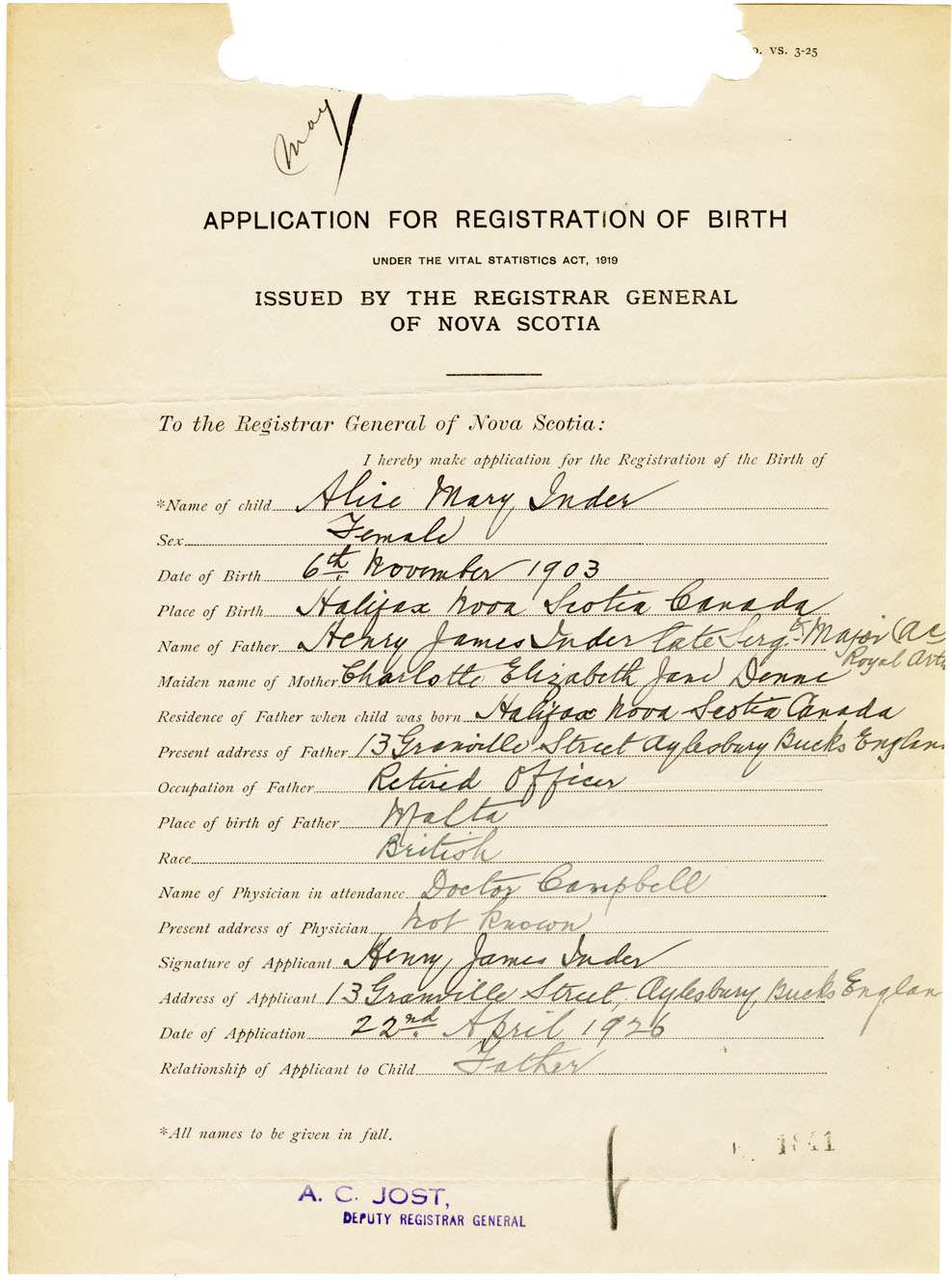 Nova Scotia Archives — https://archives.novascotia.ca/vital-statistics/birth/?ID=461078