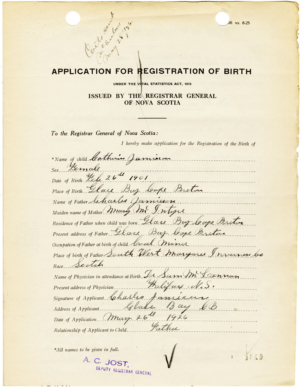 Nova Scotia Archives — https://archives.novascotia.ca/vital-statistics/birth/?ID=461083