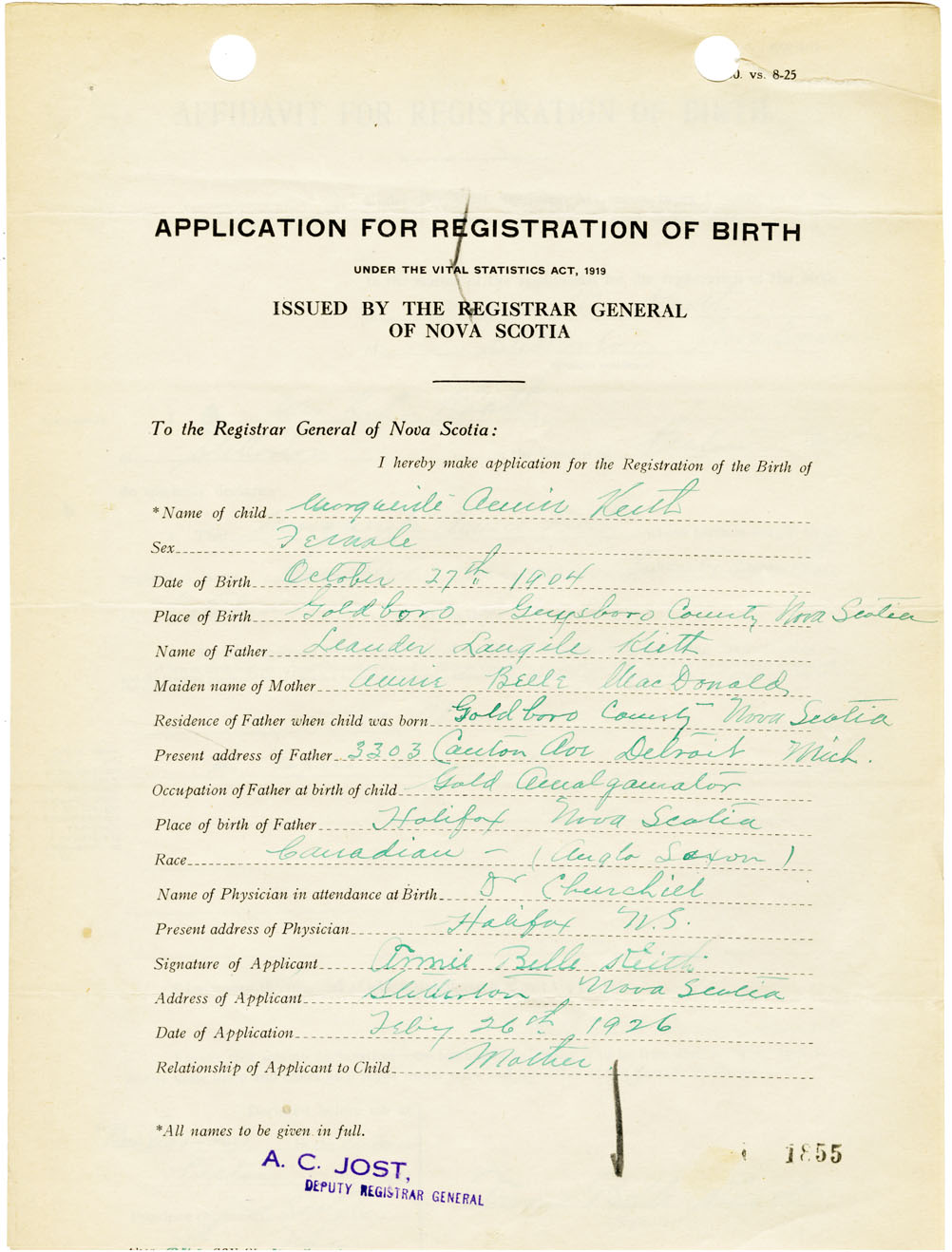 Nova Scotia Archives — https://archives.novascotia.ca/vital-statistics/birth/?ID=461089