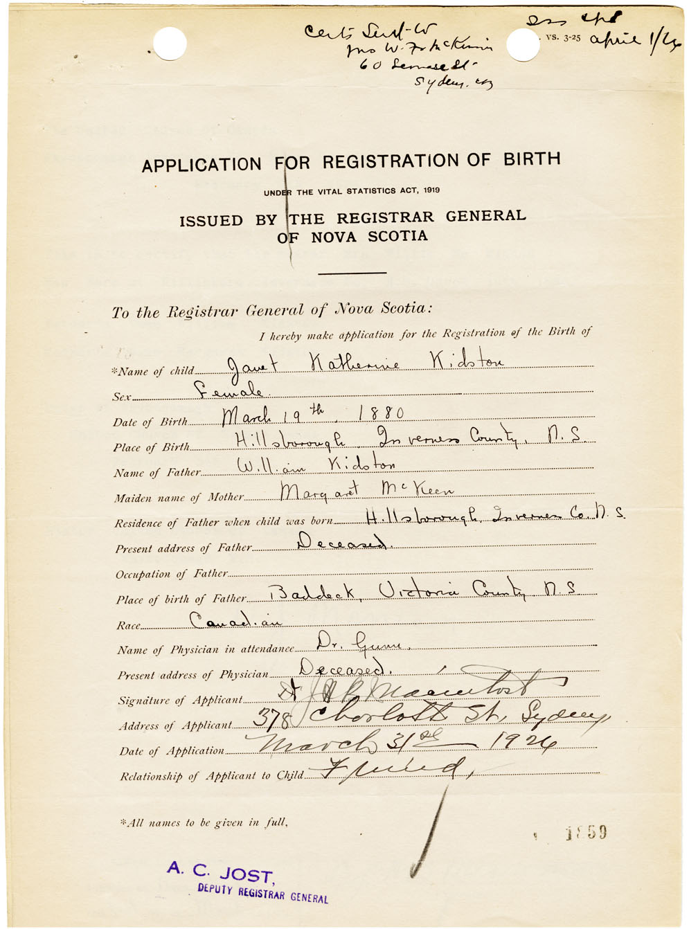 Nova Scotia Archives — https://archives.novascotia.ca/vital-statistics/birth/?ID=461091