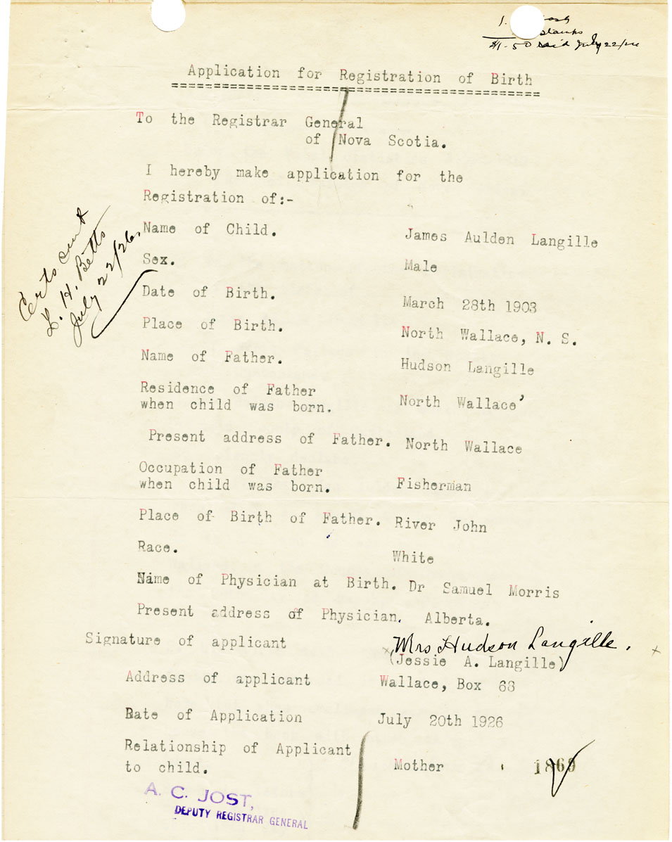 Nova Scotia Archives — https://archives.novascotia.ca/vital-statistics/birth/?ID=461098
