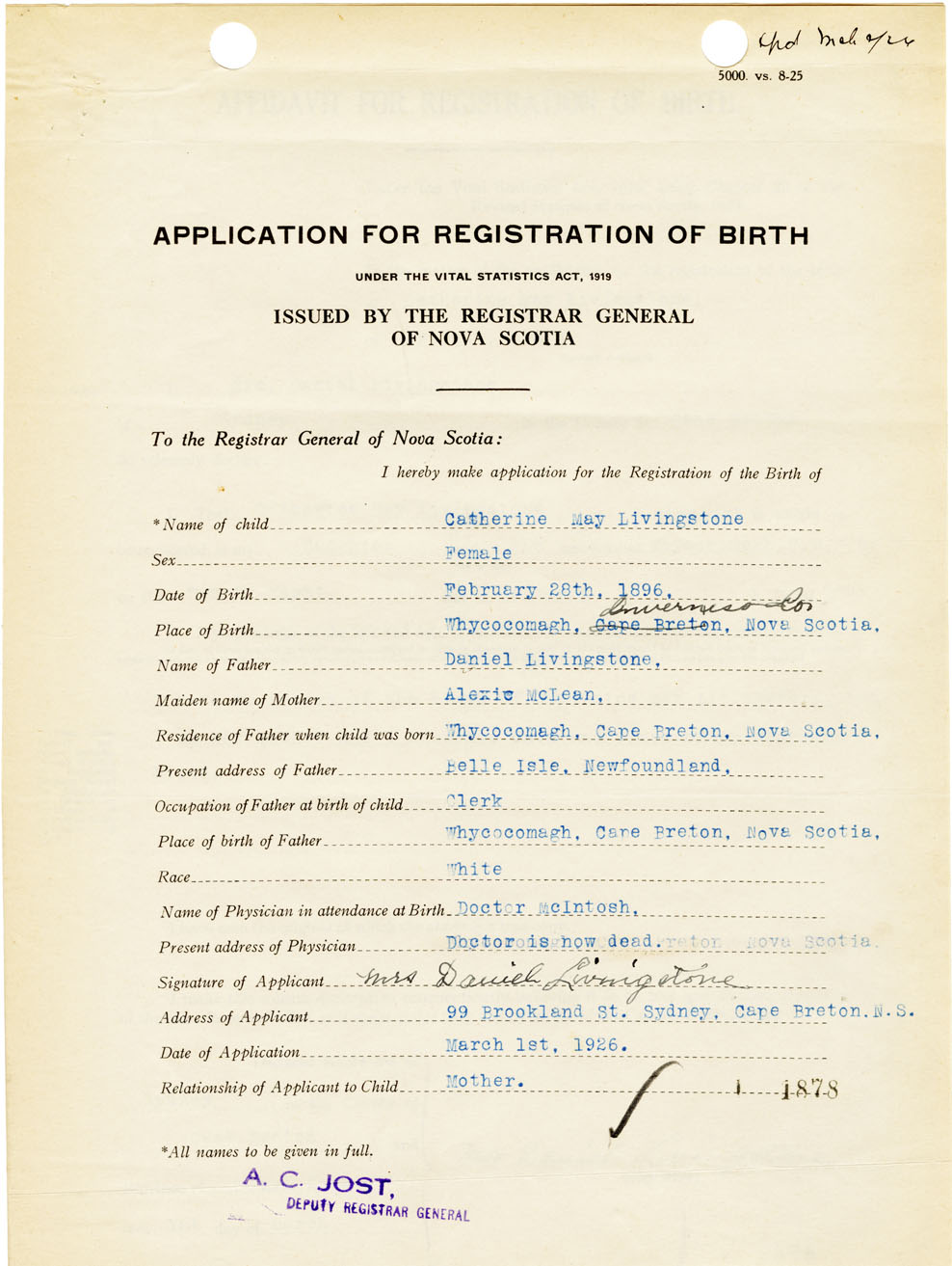 Nova Scotia Archives — https://archives.novascotia.ca/vital-statistics/birth/?ID=461103