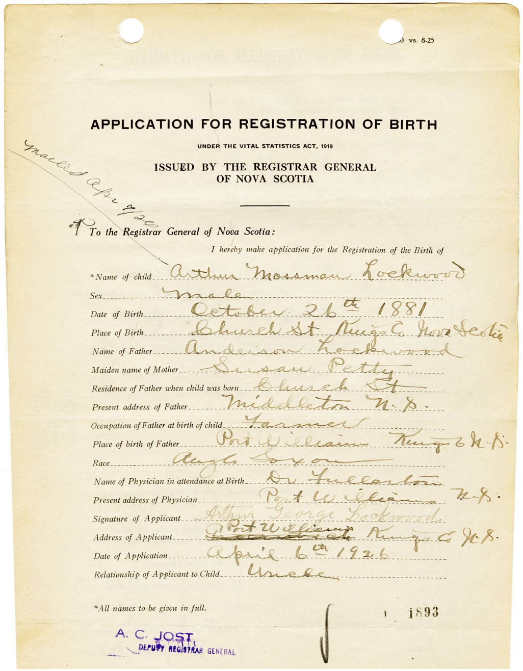 Nova Scotia Archives — https://archives.novascotia.ca/vital-statistics/birth/?ID=461112