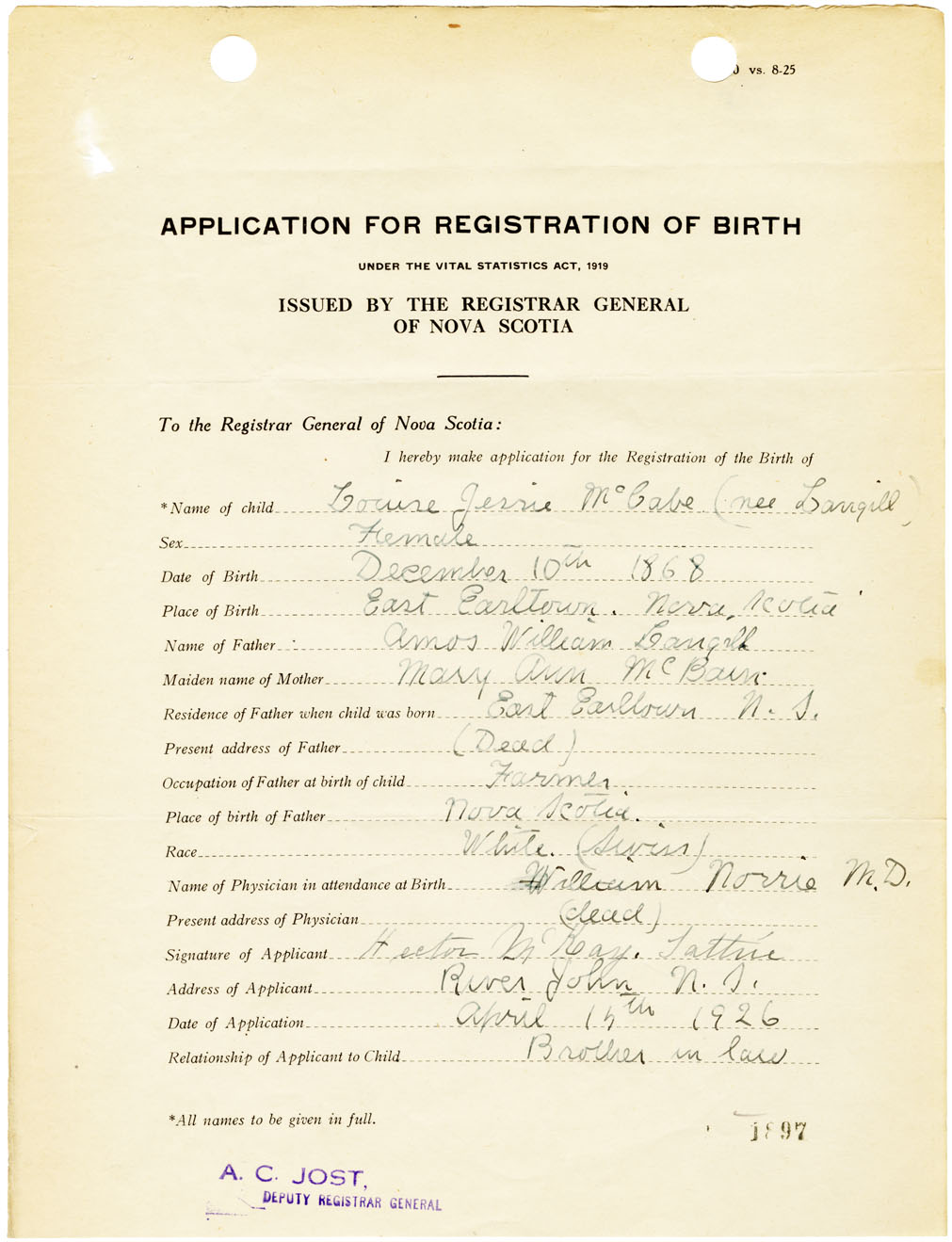 Nova Scotia Archives — https://archives.novascotia.ca/vital-statistics/birth/?ID=461115