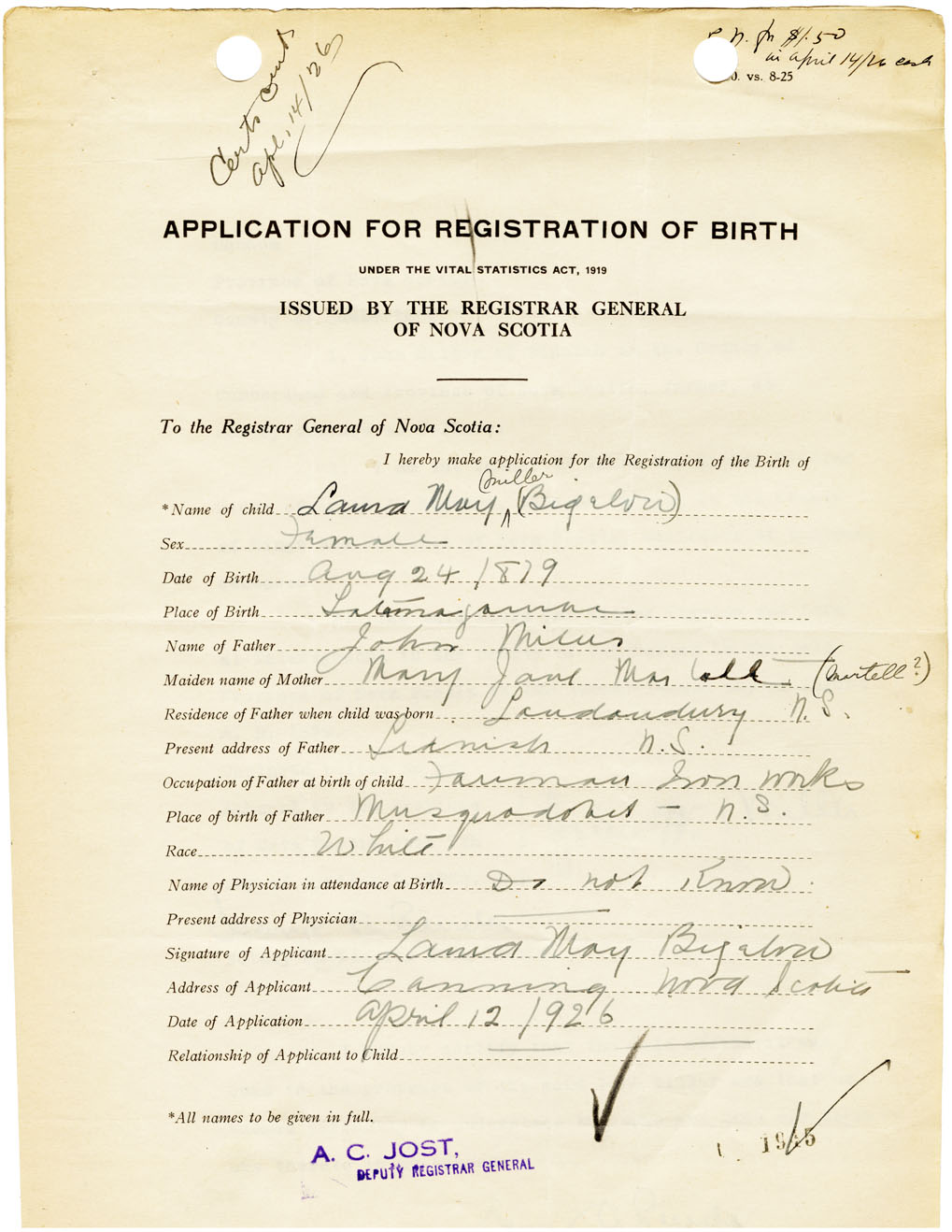Nova Scotia Archives — https://archives.novascotia.ca/vital-statistics/birth/?ID=461149