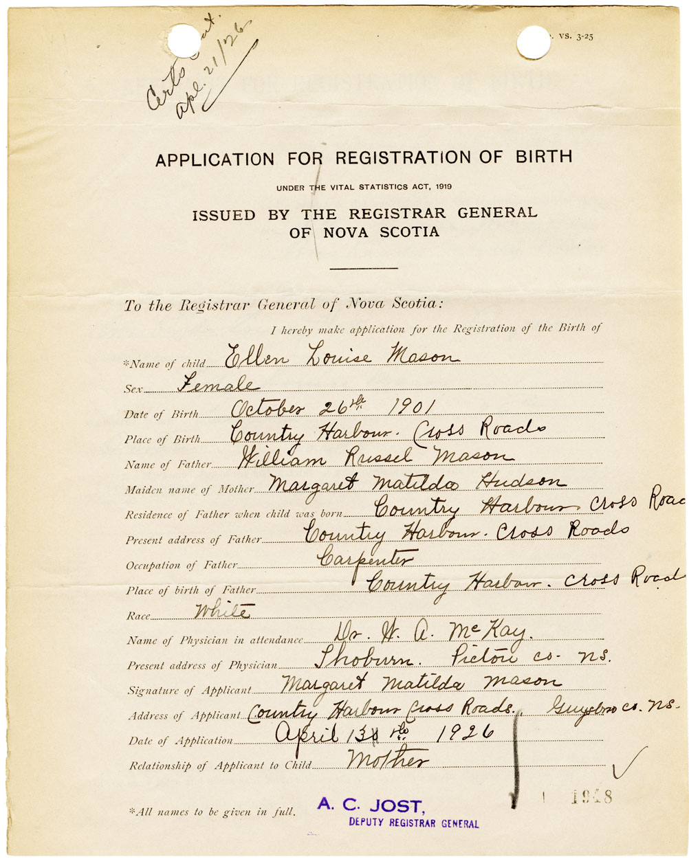 Nova Scotia Archives — https://archives.novascotia.ca/vital-statistics/birth/?ID=461150