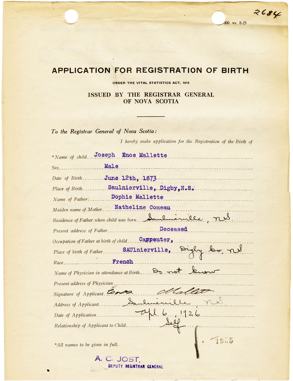 Nova Scotia Archives — https://archives.novascotia.ca/vital-statistics/birth/?ID=461154