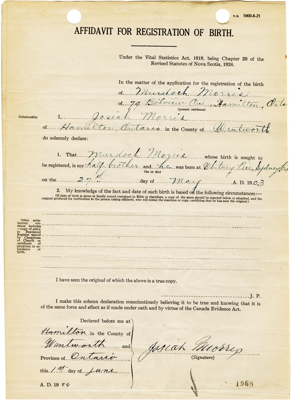 Nova Scotia Archives — https://archives.novascotia.ca/vital-statistics/birth/?ID=461165
