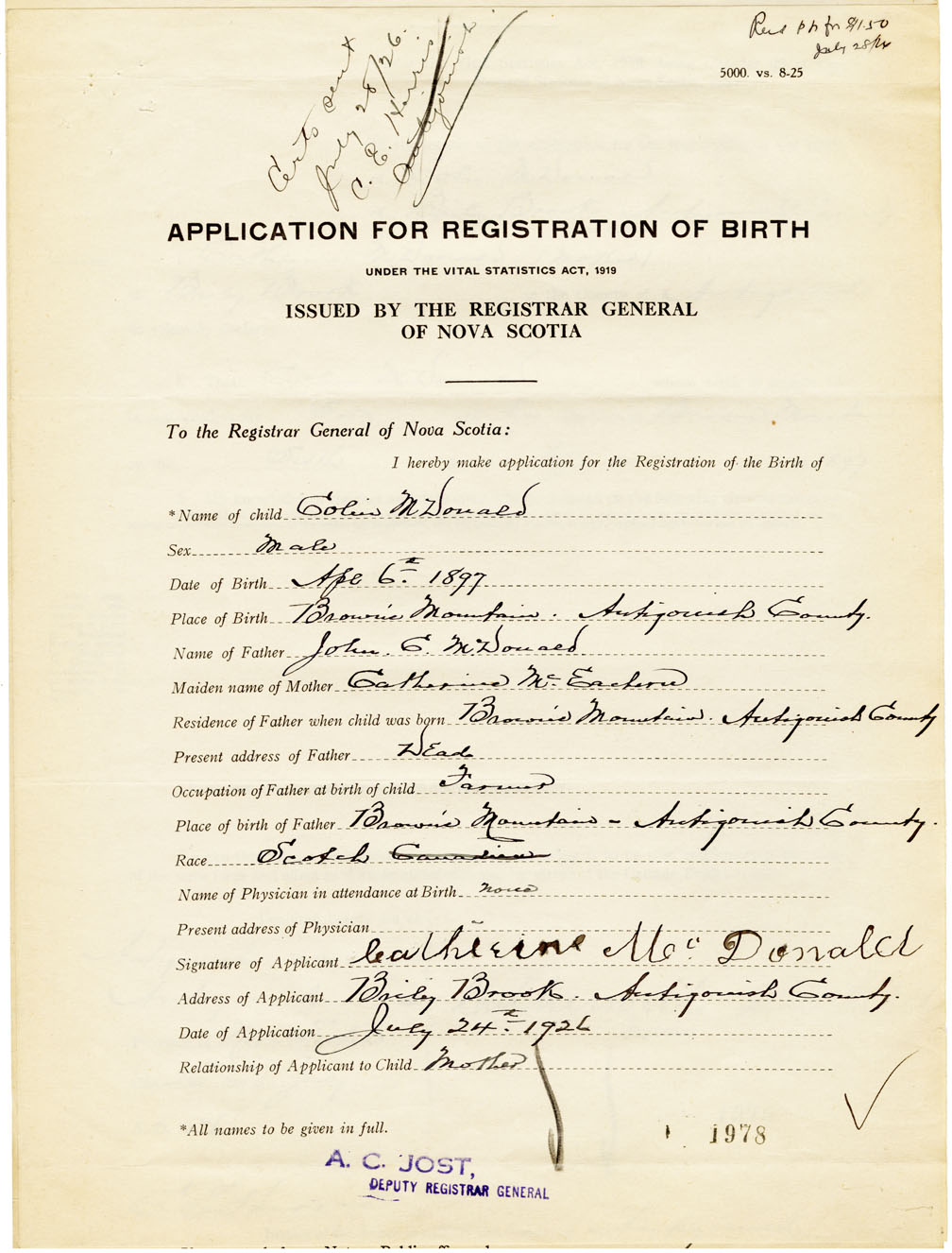 Nova Scotia Archives — https://archives.novascotia.ca/vital-statistics/birth/?ID=461175