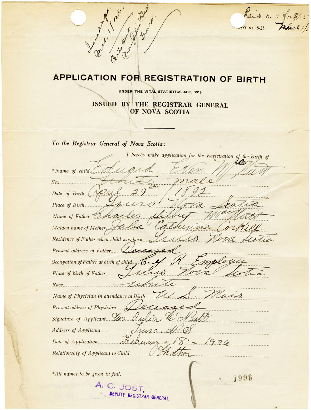 Nova Scotia Archives — https://archives.novascotia.ca/vital-statistics/birth/?ID=461190