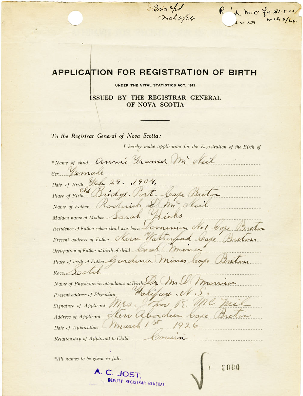 Nova Scotia Archives — https://archives.novascotia.ca/vital-statistics/birth/?ID=461193