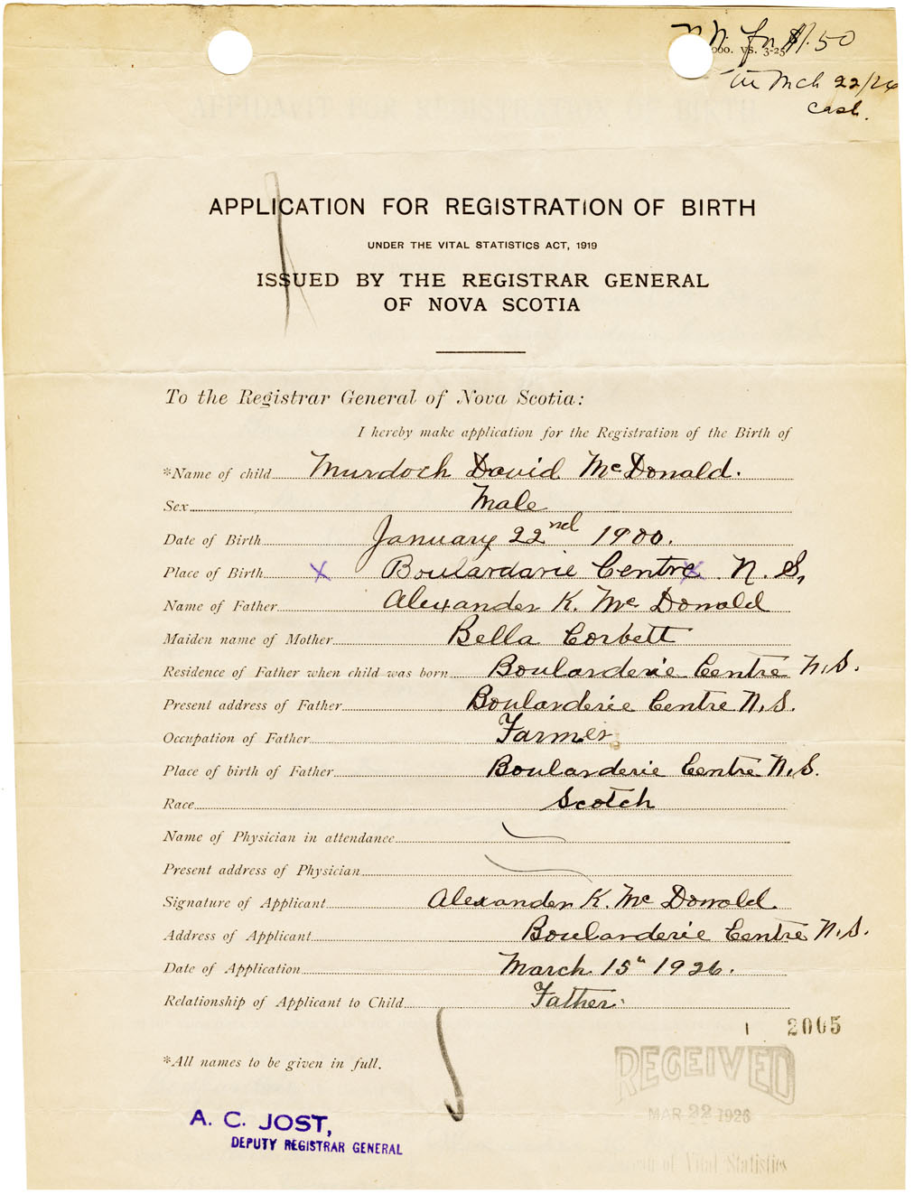 Nova Scotia Archives — https://archives.novascotia.ca/vital-statistics/birth/?ID=461198
