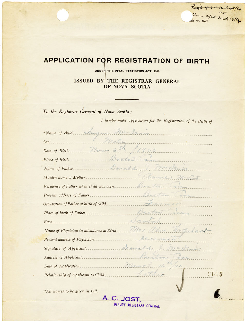 Nova Scotia Archives — https://archives.novascotia.ca/vital-statistics/birth/?ID=461212