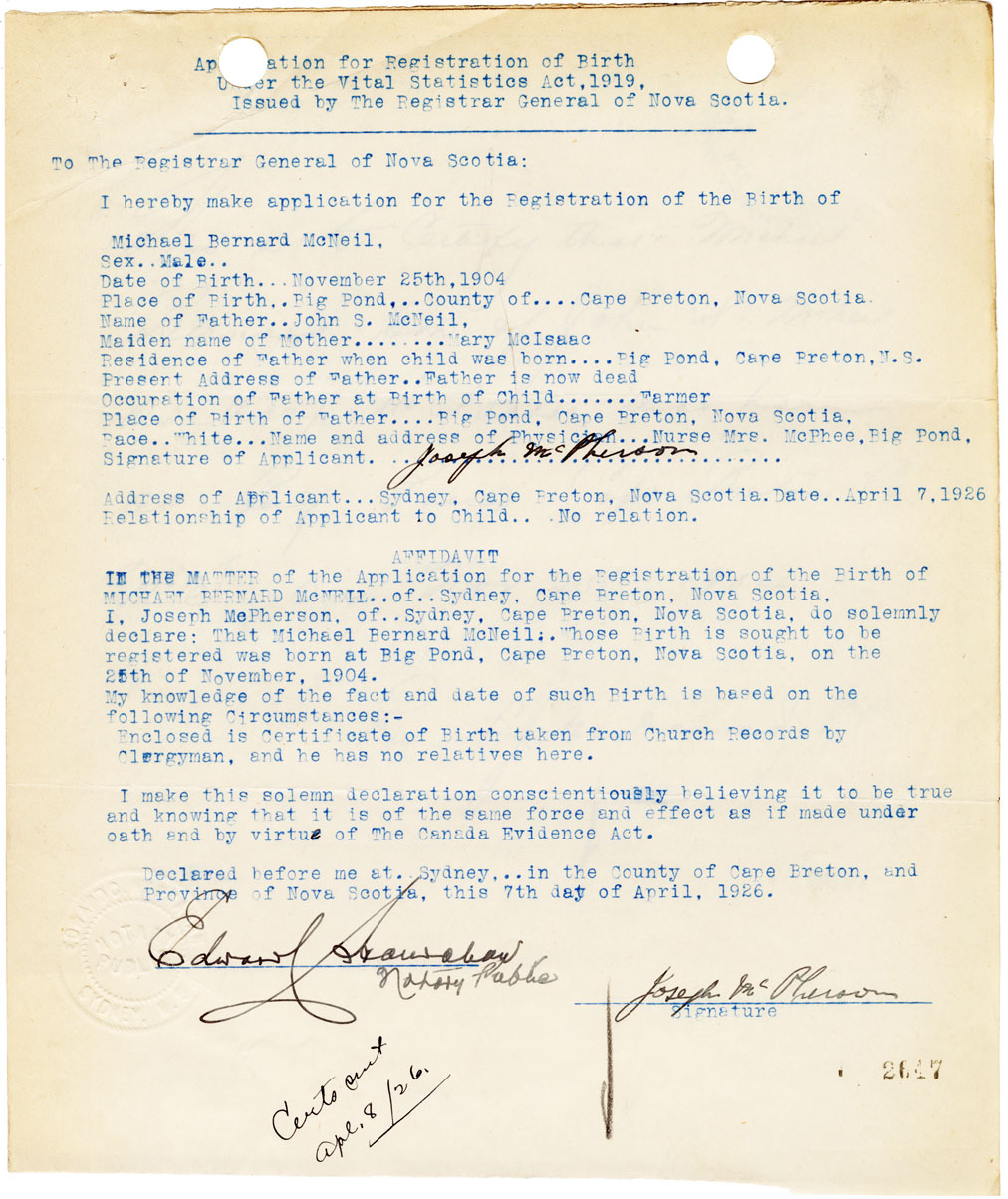 Nova Scotia Archives — https://archives.novascotia.ca/vital-statistics/birth/?ID=461230